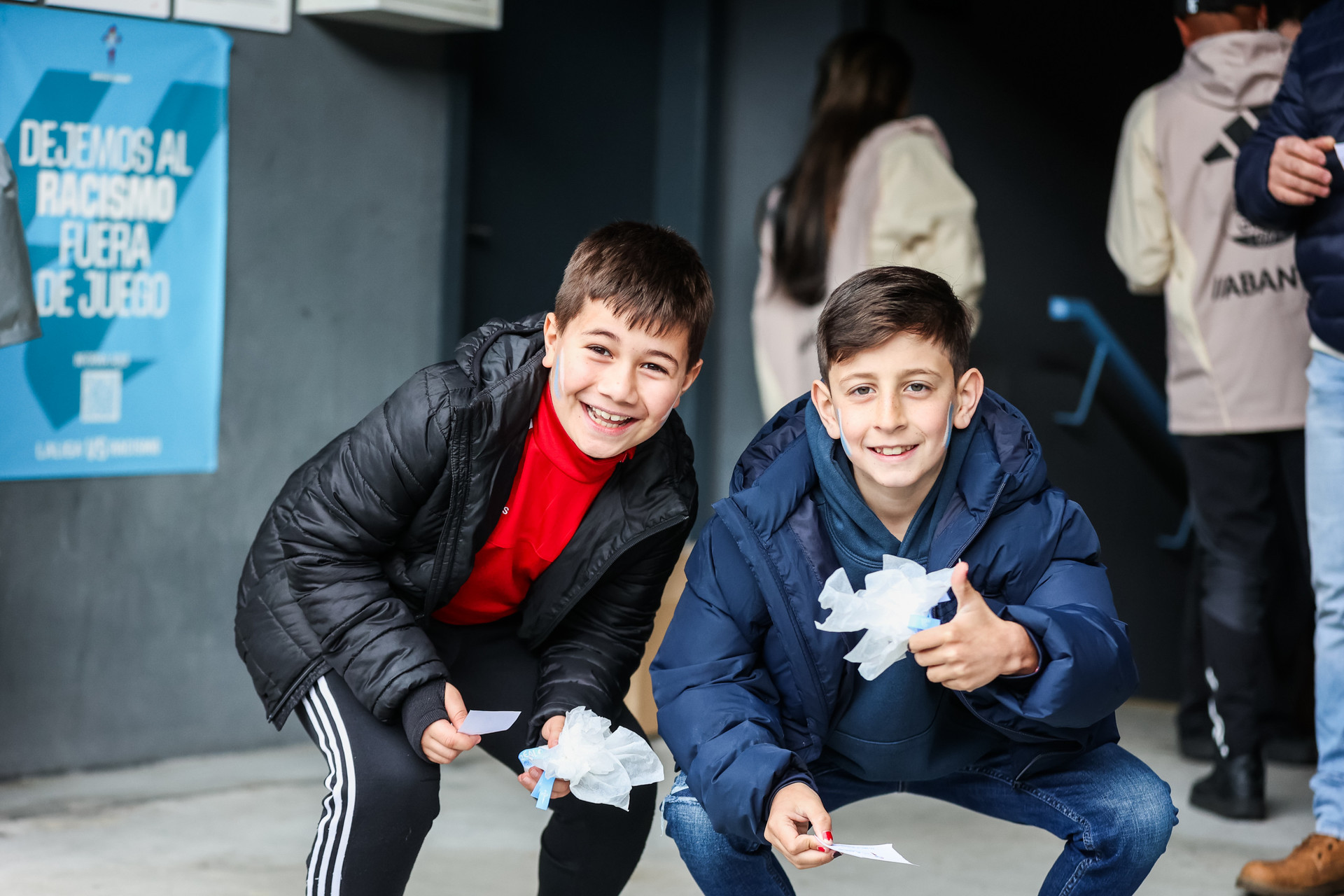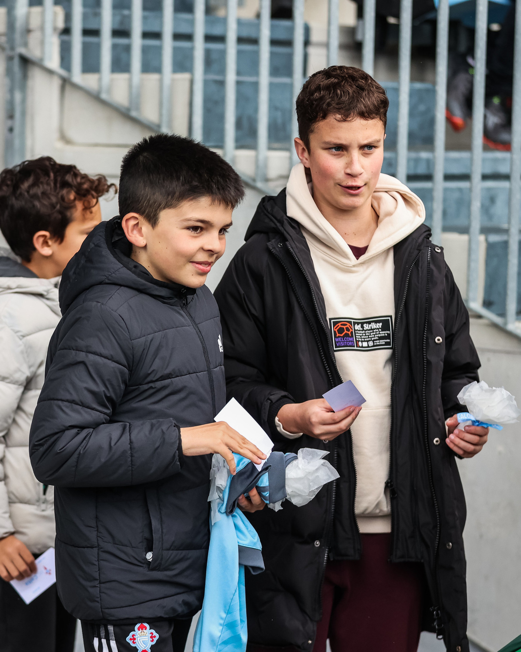 Alegría e ilusión nun festivo no que a forte choiva deu tregua durante as case dúas horas e na que os afeccionados puideron gozar, ademais da sesión preparatoria dos xogadores, da homenaxe a Samuel Comesaña, xogador do Fundación Celta Integra, que anunciou nas últimas semanas a súa retirada do fútbol por lesión.